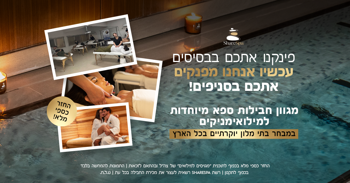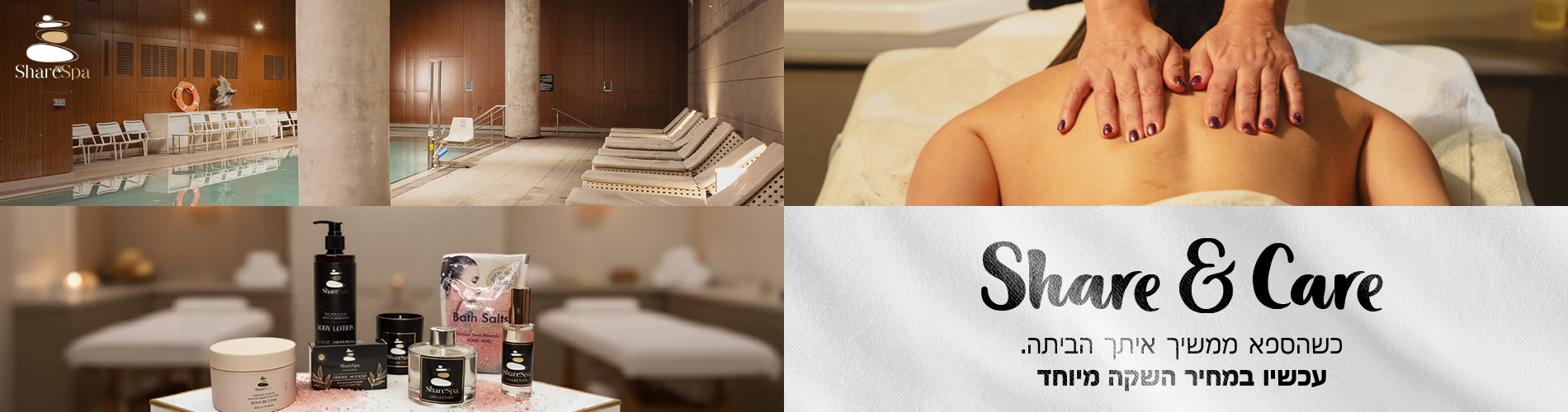 יצרנו לכם חבילות מושלמות שתקפות לכל סניפי רשת ShareSpa במבחר מלונות ומתחמי ספא מפנקים מהשורה הראשונה ולכל ימות השבוע.